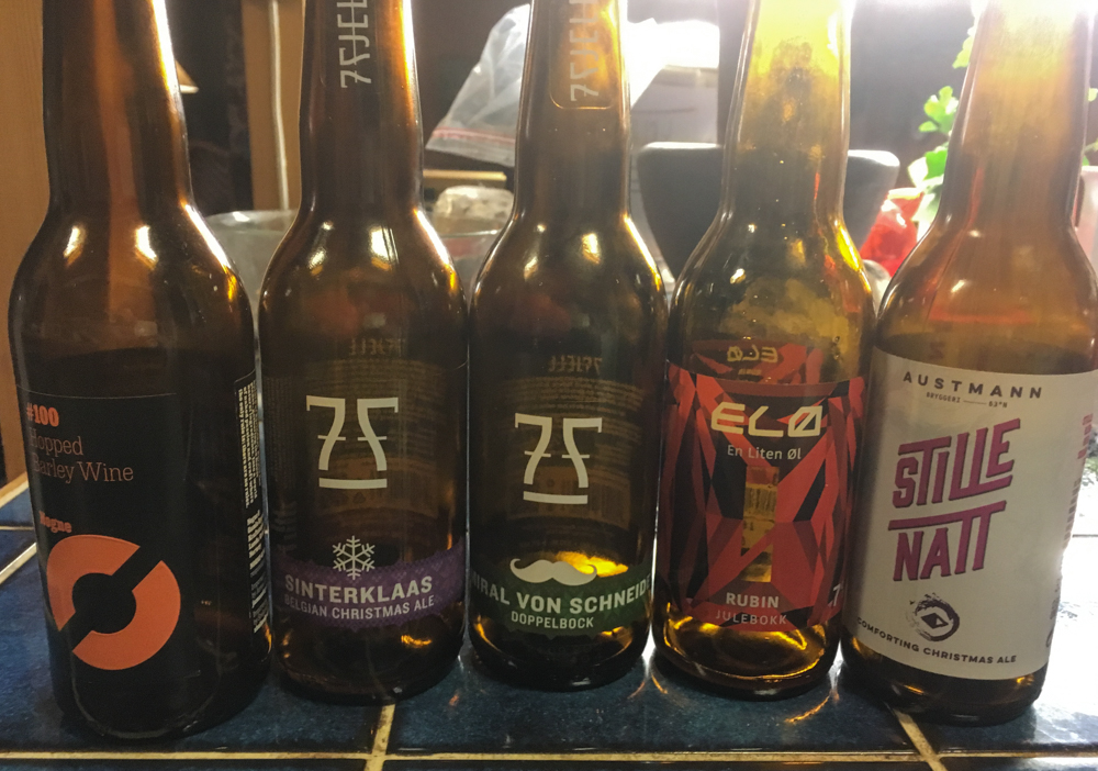 Her ein kveld drakk eg og Lars oss gjennom nokre poløl, sjå det biletet som byrjar med Nøgne Ø til venstre, kalla “Hopped barley wine”. Denne var heilt usannsynleg kraftig, søt og god, i den grad at alle dei andre på biletet forsvann i skuggen av Ø, sjølv om dei var gode. Må prøvast! Ikkje ein øl du drikk mange av, men du verda for ei smaksbombe. Som å drikka den finaste konjakk, ein tysk Eiswein eller ein italiensk Amarone. Eg kan ikkje minnast at denne ølen står attende for noko eg har smakt, heller ikkje belgisk klostervin. Det er no godt ein ikkje treng vera munk eller bu i kloster for å laga god øl.